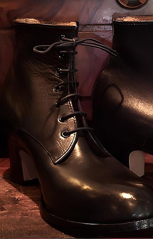 Ce modele est inspiré des bottes que portaient les femmes allemandes entre-deux guerres, sans doute allant guincher dans quelques bals bavarois.